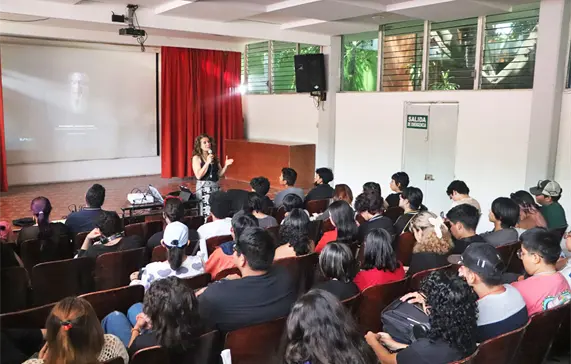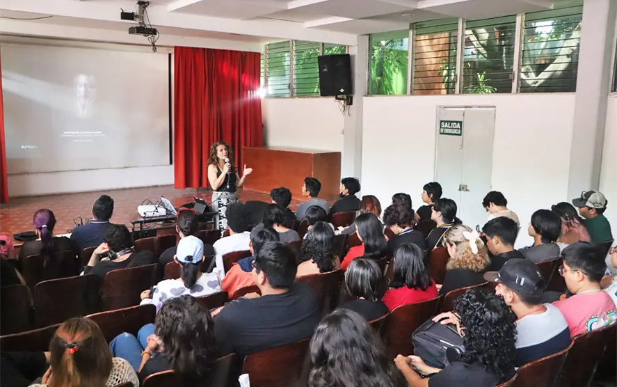 Como parte de un intercambio académico, la fotógrafa, ilustradora, videocreadora y catedrática de la Universidad de Veritas, Costa Rica, Adela Marín Villegas, impartió una charla para alumnos de la Universidad de Ciencias y Artes de Chiapas (Unicach).
