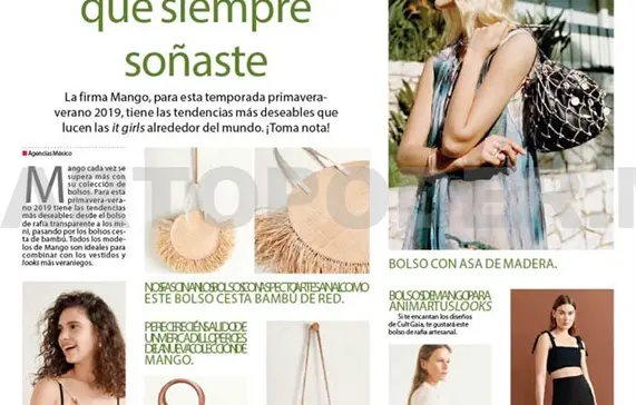 Mango cada vez se supera más con su colección de bolsos. Para esta primavera-verano 2019 tiene las tendencias más deseables: desde el bolso de rafia transparente a los mini, pasando por los bolsos cesta de bambú. Todos los modelos de Mango son ideales para combinar con los vestidos y looks más veraniegos.