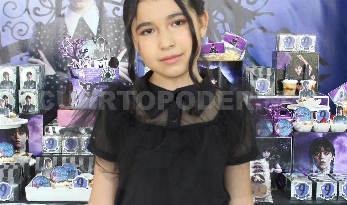 Con la temática de su serie favorita, Merlina, fue como festejaron los nueve años de Naomi. Sus seres queridos se reunieron en un divertido salón de fiestas donde disfrutaron las diferentes atracciones, los pintacaritas y el show para la festejada. Y no podían faltar las piñatas y “Las mañanitas” para la cumpleañera. ¡Muchas felicidades!