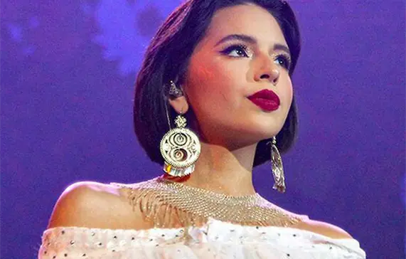 En la foto que ha sorprendido a todos sus fanáticos, Ángela Aguilar demuestra su pasión por la moda al lucir un ajustado vestido dorado con pedrería y unas mangas de plumas que sin duda la transportan a la época de los boleros mexicanos, es decir, alrededor de la época de 1920, año en que dicho género musical comenzó a hacerse conocido en nuestro país.