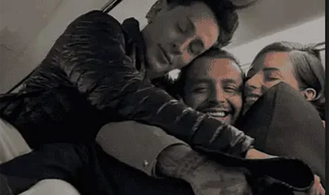 En la segunda foto aparecen los tres sonrientes y encimados en uno de los asientos del avión; Christian abraza a Ángela, quien también estuvo ausente en su canal de Whatsapp.