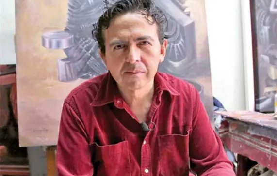 Con 26 años de trayectoria, busca mostrar a través de la pintura aquello que le apasiona visualmente y que, como decía Tamayo, un pintor siempre debe hablar de su realidad, de su entorno y quien no lo ve así, está soñando, así que hoy habla de las máquinas y de su relación con la humanidad.