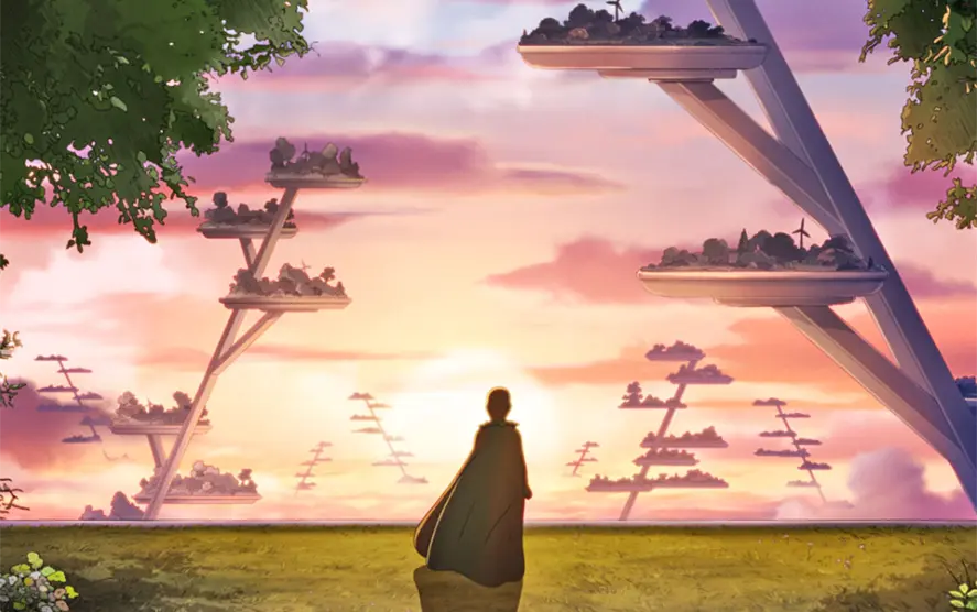 Por un accidente, Arco termina usando uno de ellos y llega al año 2075, es ahí donde conoce a Iris, una niña que vive en una ciudad que depende de la tecnología, la cual ha causado desastres ambientales, los adultos son emocionalmente ausentes y la dependencia es casi total hacia los asistentes robóticos. “Era 2019, yo sentía que entrábamos en una película de ciencia ficción muy mala. Entonces pensé que quizá la ciencia ficción tiene cierta responsabilidad en el mundo en el que vivimos y tal vez ahora es nuestro trabajo, como creadores de ciencia ficción, imaginar cosas mejores para el futuro”, explica.