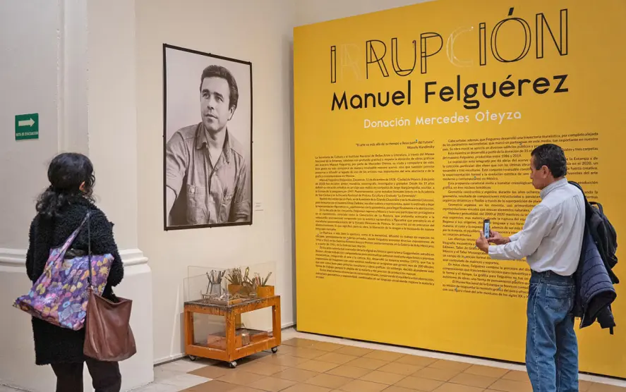 Con “Irrupción Manuel Felguérez. Donación Mercedes Oteyza” es como el Museo Nacional de la Estampa (Munae) da la bienvenida a la donación de 38 obras del artista Manuel Felguérez (Zacatecas, 1928-Ciudad de México, 2020) que hizo Mercedes Oteyza, viuda del artista.