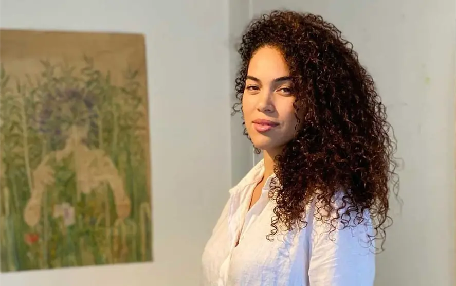 “Cada pintura es un portal a una historia espiritual”, explica Gabriela Pez. “Mis personajes sostienen plantas específicas utilizadas en rituales de sanación física y espiritual. A través de ellas, investigo mi identidad como mujer afrocubana, y cuestiono la forma en que la negritud ha sido históricamente representada —o invisibilizada— en el arte cubano”.