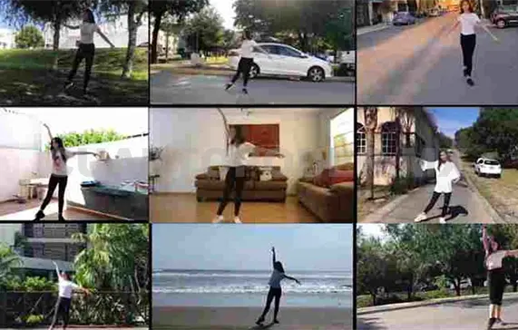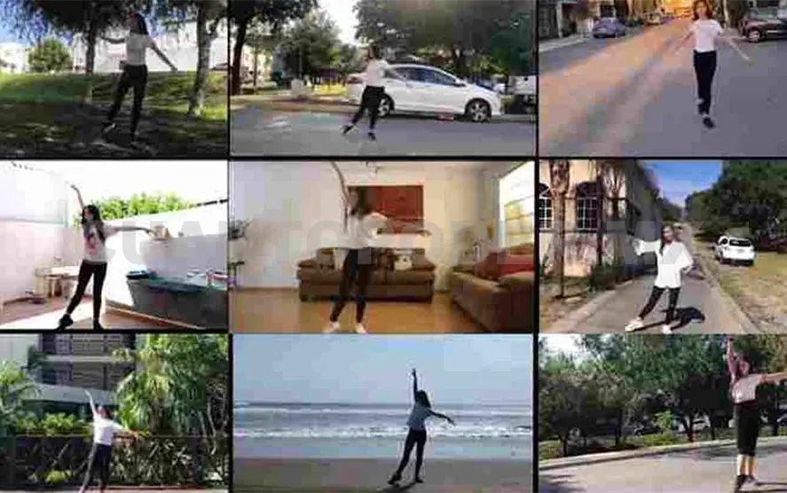 Posteriormente vemos que las jóvenes bailarinas desde el lugar donde se encuentran, la sala de su casa, el patio, el jardín, la playa y la calle, combinan las posiciones de manos con algunos movimientos e inmediatamente se muestran una serie de giros de cada una de las intérpretes.