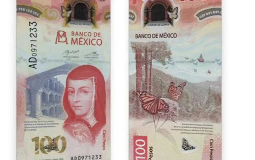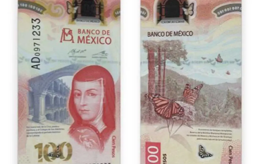 El nuevo billete de 100 pesos que trae la imagen de Sor Juana Inés de la Cruz fue reconocido como el mejor del 2020, anunció la International Bank Note Society (IBNS). La pieza de polímero de diseño vertical de color predominantemente rojo, comenzó a circular desde el 12 de noviembre del año pasado.