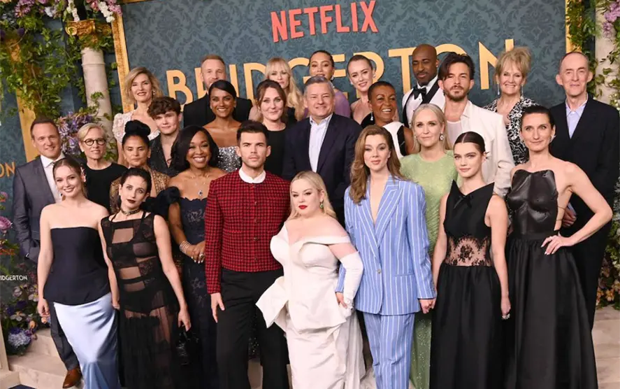 Encabezado por Luke Thompson y Yerin Ha, protagonistas de la nueva entrega, el evento recreó el universo de la alta sociedad del “ton” con un despliegue de elegancia, romance y espectáculo digno de Lady Whistledown. La noche fue transmitida en vivo a través de Tudum y reunió a fans de todo el mundo.