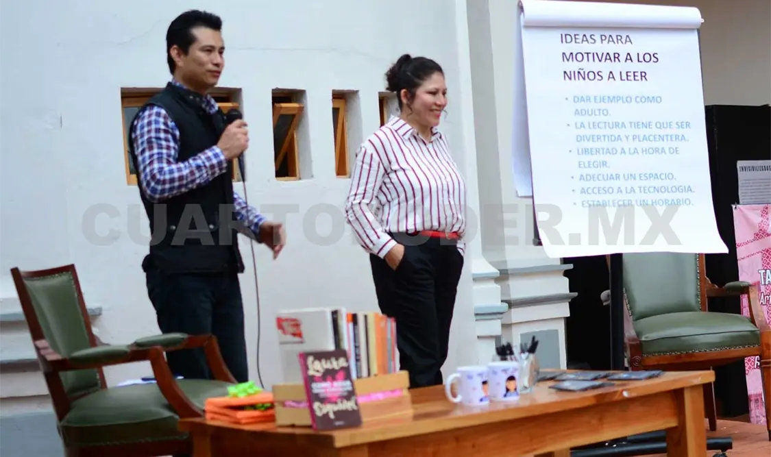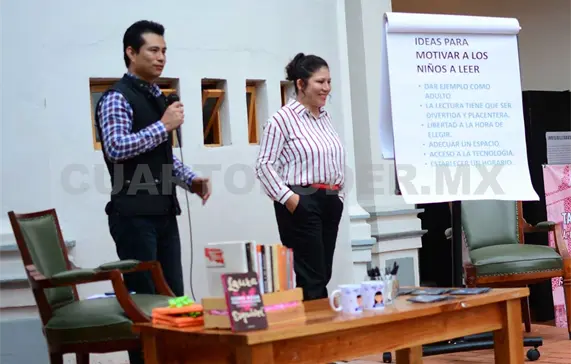 La primera actividad fue la ponencia “Beneficios e ideas para motivar a los niños a leer”, por la licenciada en Pedagogía Adela Pérez Jiménez. Entre los puntos más importantes destacó que hay que poner el ejemplo como adultos, hacer que la lectura sea divertida y placentera, que haya la libertad de elegir, que se cuente con un espacio adecuado y establecer un horario.