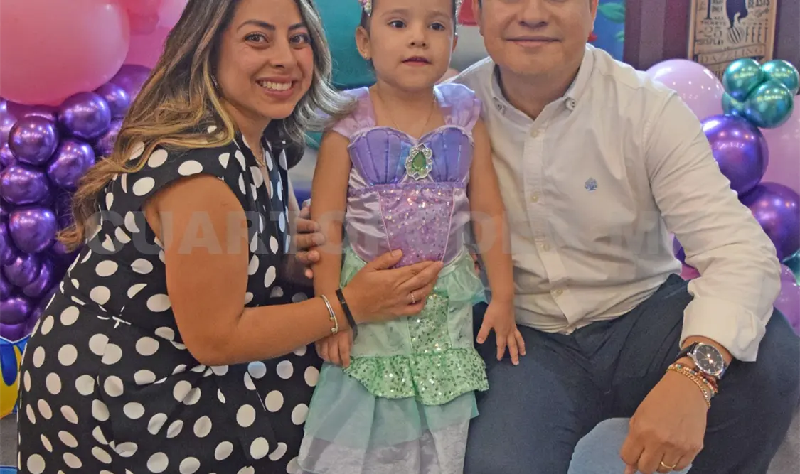 La pequeña Elisa festejó su cuarto cumpleaños en un divertido salón de juegos, rodeada de familiares y amigos. Con una encantadora temática de La sirenita, el evento estuvo lleno de colores, burbujas y elementos marinos. La cumpleañera, vestida como su personaje favorito, sopló las velitas de un espectacular pastel inspirado en Ariel. ¡Una maravillosa tarde que dejó sonrisas y momentos mágicos para recordar!