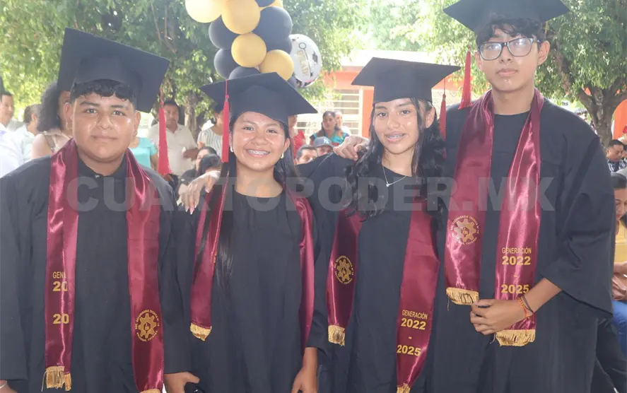 Una emotiva ceremonia se vivió en la Escuela Secundaria Técnica, donde los alumnos de tercer grado culminaron una importante etapa de su vida académica. Acompañados de sus familias, maestros y directivos, los alumnos recibieron sus diplomas en un emotivo acto. Posteriormente se tomaron las fotos y disfrutaron el mariachi, que no podía faltar ese día especial