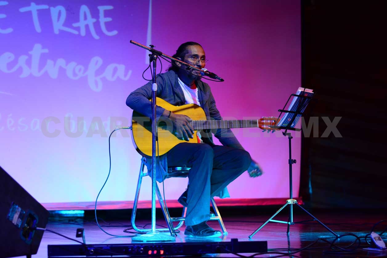 Con diez temas musicales que pertenecen a su más reciente disco, el trovador y compositor César Gandhi fue el protagonista de una velada en el auditorio del centro cultural Jaime Sabines, como parte del programa “Del verso a la boca se trae la estrofa”.