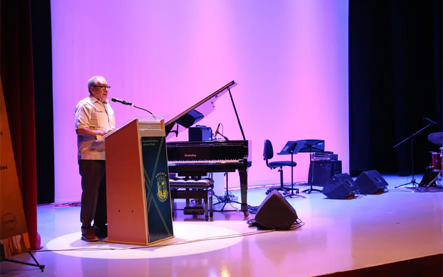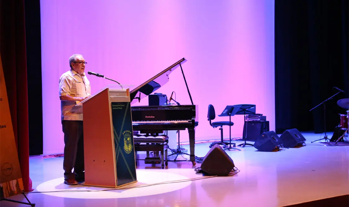 Ante esto, el rector de la Unicach, Juan José Solórzano Marcial, atestiguó la gran final de ensambles y solistas. Además, dio la bienvenida a los participantes, y detalló que a través de la Facultad de Música se imparte desde el 2009 la licenciatura en Jazz y Música Popular.