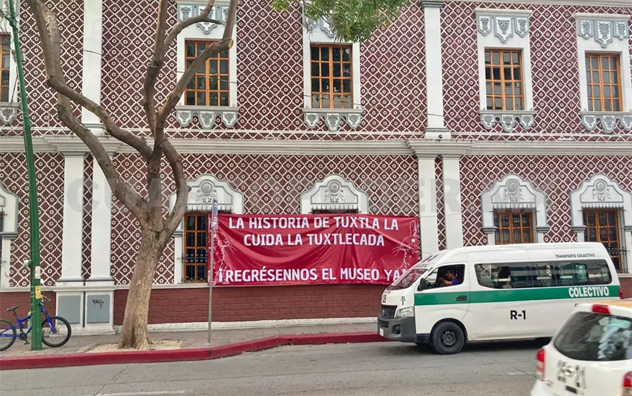 Con el despliegue de una manta que rezaba “La historia de Tuxtla la cuida la tuxtlecada, regrésennos el museo ya”, comenzó el programa pensado para honrar este recinto.