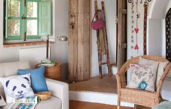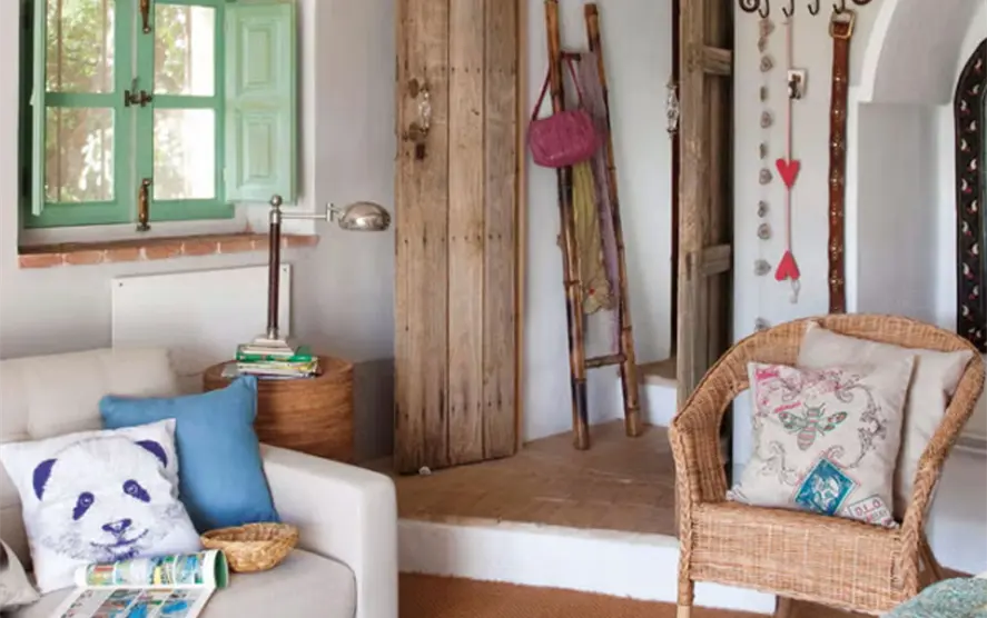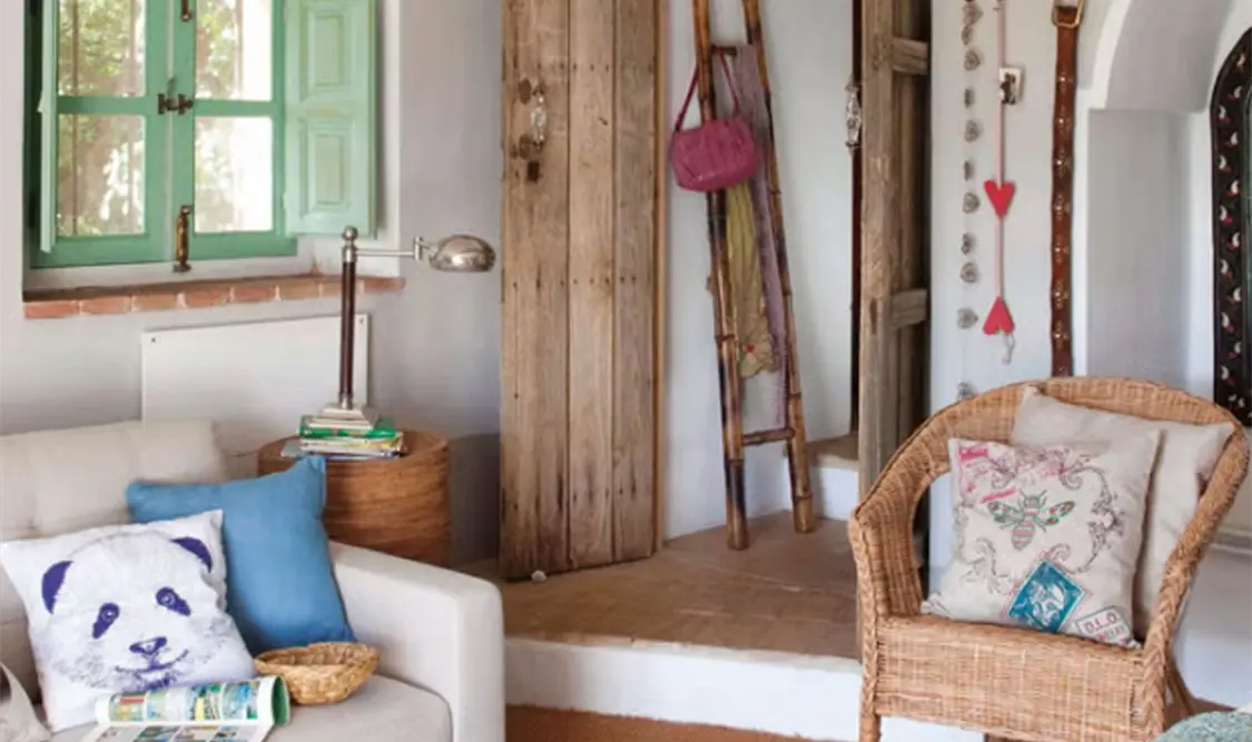 Tanto en las telas —con textura y trama— (lana, algodón, lino) como en las tonalidades. La tendencia del estilo rústico de hace décadas, basada en maderas oscuras, tonos estridentes y cuadros, cayó en el olvido. Ahora el rústico se aclara, aunque haya piezas más llamativas. Encajan los muebles antiguos de madera, pintados en colores pastel. El blanco o la madera lavada o natural nos ayuda a conseguir el efecto que perseguimos: un ambiente sosegado. A esa base neutra se añaden pinceladas de colores. Los estampados que triunfan: flores, rayas y motivos animales y botánicos.