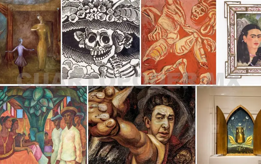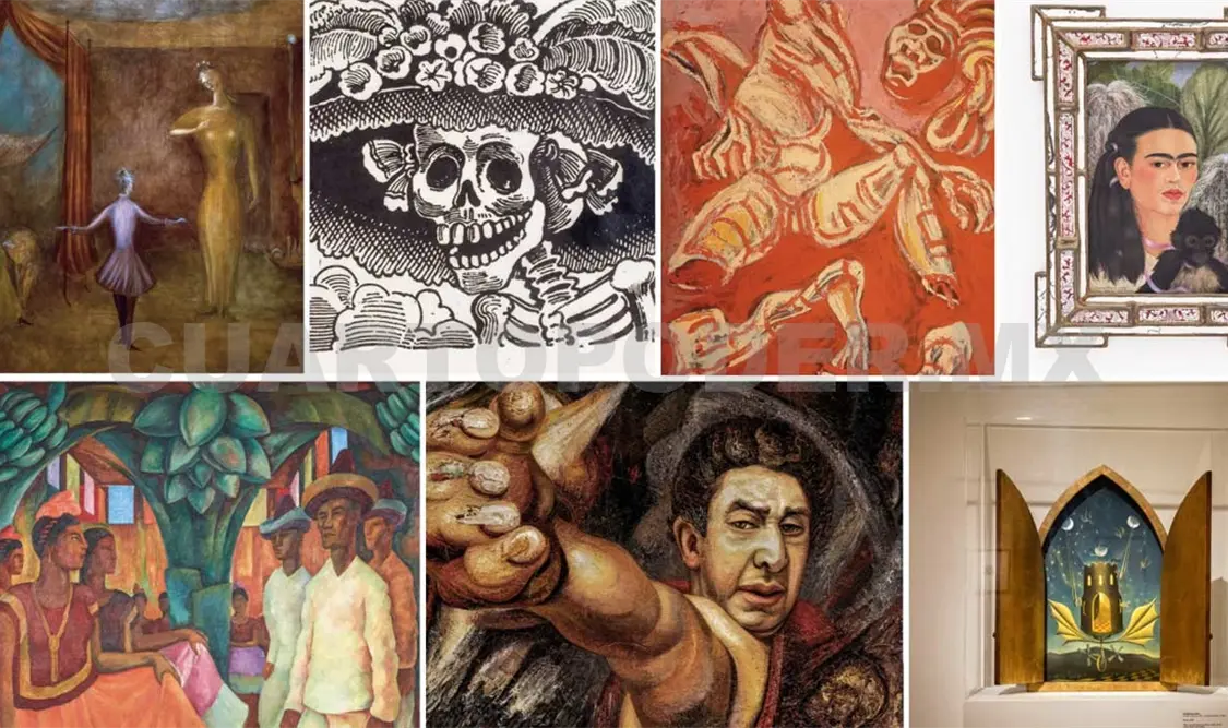 Más de 60 % de las obras son de caballete; se generaron reproducciones de murales creados en los dos países, y con recursos tecnológicos se reproducen y agrandan detalles de las obras.