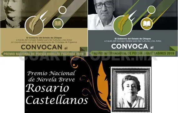 En años anteriores era común que por estas fechas estuvieran vigentes los llamados a participar en los siguientes concursos: Premio Internacional de Poesía Jaime Sabines, Premio Internacional de Novela Breve Rosario Castellanos y Premio Nacional de Poesía Rodulfo Figueroa.