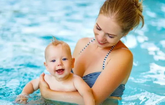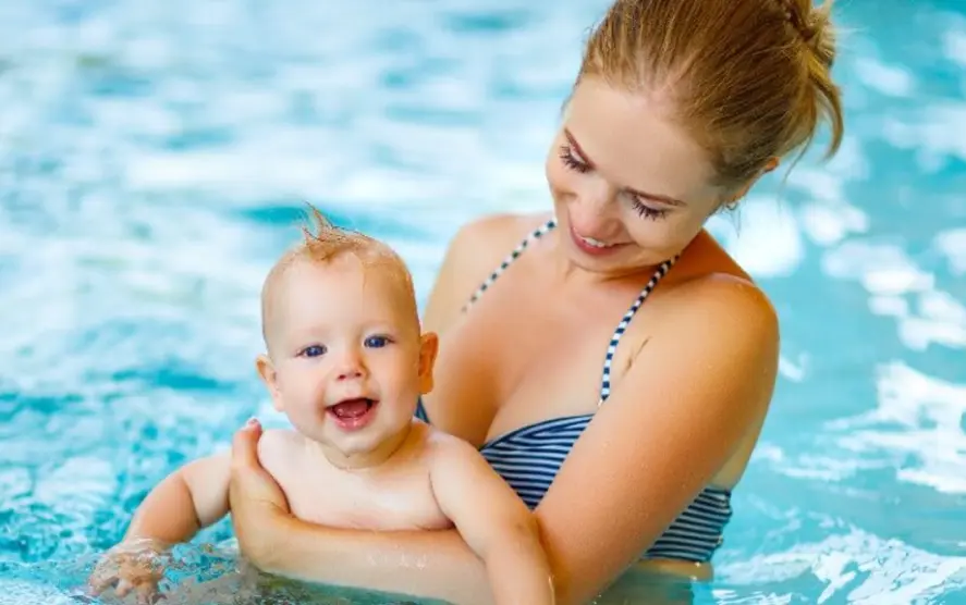 Asegúrate de que la piscina a la que vas a ir mantiene el agua entre 31 y 34 °C. Ya que los peques tienden a enfriarse más rápido que los adultos y puede que una experiencia que debía ser buena, acabe siendo desagradable para el bebé por pasar frío.