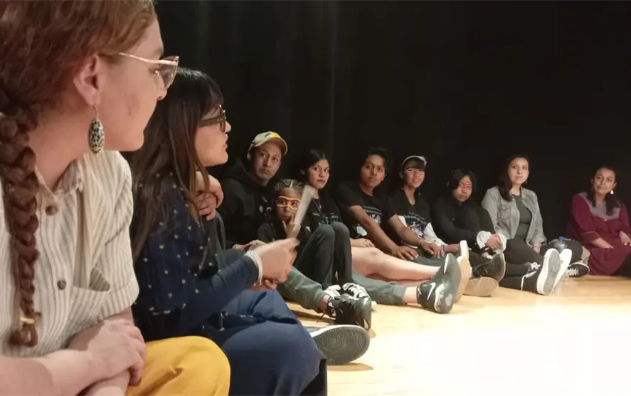 Las y los integrantes del Semillero Creativo de Teatro en Atlixco presentaron un fragmento de su puesta en escena Atlixco, te llevo en mi corazón, realizaron ejercicios de improvisación escénica y participaron en una asamblea de reflexión sobre los cuidados colectivos. También se abrió un espacio de diálogo en el cual se compartieron experiencias sobre la importancia del arte como medio para promover el bienestar y la corresponsabilidad en los cuidados.