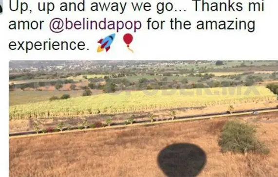 “Arriba, arriba vamos. Muchas gracias mi amor, @belindapop, por una experiencia tan maravillosa”, escribió el mago estadounidense en su perfil de Twitter, junto a una imagen que dejaba claro que su amada había decidido dar comienzo a un romántico fin de semana con un apasionante viaje en globo aerostástico.