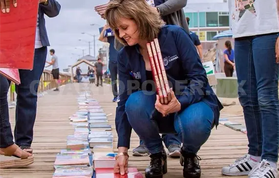 Fueron cientos de libros recabados a través de donativos hechos por la ciudadanía, que fueron colocados a lo largo del andador turístico en el malecón de Playas de Tijuana, formando un kilómetro de distancia.
