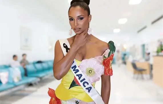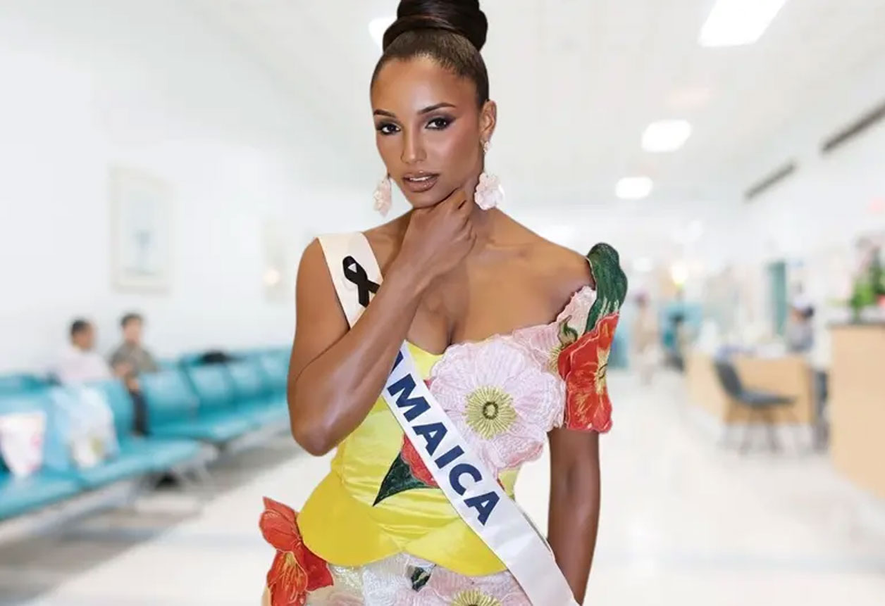 La jamaiquina no pudo continuar luego de la etapa preliminar de Miss Universo 2025, esto debido a que, mientras caminaba por el escenario, al portar su vestido de noche, sufrió una caída que ameritó hospitalización.