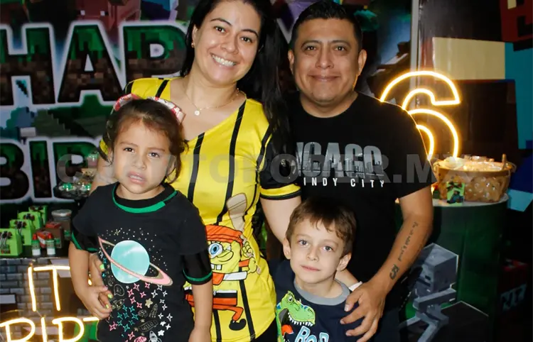 Con una hermosa y divertida piñata celebra su sexto aniversario al estilo de “Minecraft”, su videojuego favorito. El cumpleañero estuvo acompañado de su mamá Evila María que lo consintió al máximo. Dario se la pasó excelente con las divertidas ocurrencias del payaso, mientras que los adultos convivieron durante la tarde. ¡Felicidades!