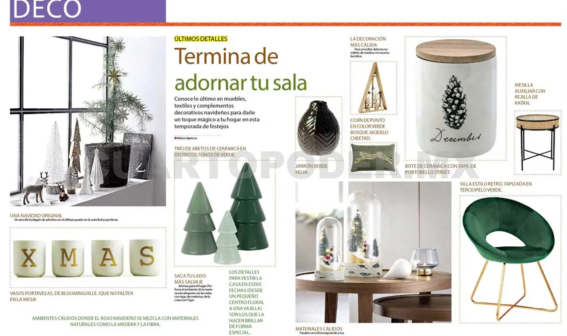 Termina de adornar tu salaConoce lo último en muebles, textiles y complementos decorativos navideños para darle un toque mágico a tu hogar en esta temporada de festejos