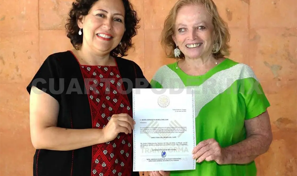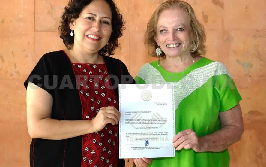 “En el impulso de la Nueva ERA que es de reconocer a las mujeres que han aportado al desarrollo de Chiapas en diversos ámbitos, Angélica Altuzar Constantino hizo entrega del nombramiento de directora del Museo del Café de Chiapas a Queta Burelo, destacada comunicóloga, feminista y promotora cultural”, informó el Coneculta.
