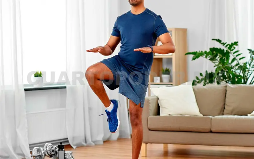 Es un trabajo menos energético, pero que requiere de fuerza en las piernas. Con tus brazos extendidos hacia adelante o al costado, ve doblando las rodillas hasta formar un ángulo de casi 90 grados de tus muslos con el suelo. Es importante mantener la espalda derecha. Unas 10 repeticiones.