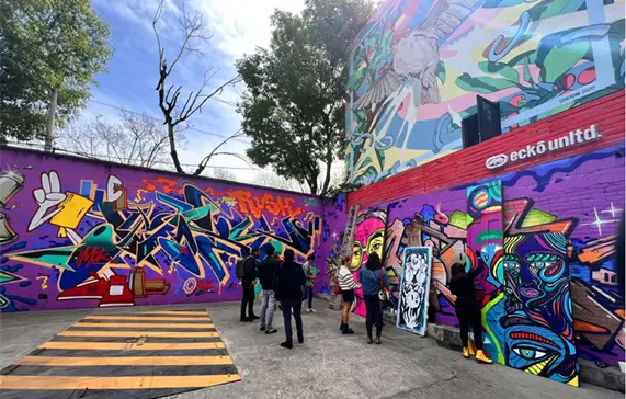 Los expositores son artistas del arte urbano de diferentes partes del mundo, aunque gran parte de los murales y stickers, que incluso es posible apreciarlos en los baños, paredes y locales, on realizados por manos de jóvenes creativos mexicanos.