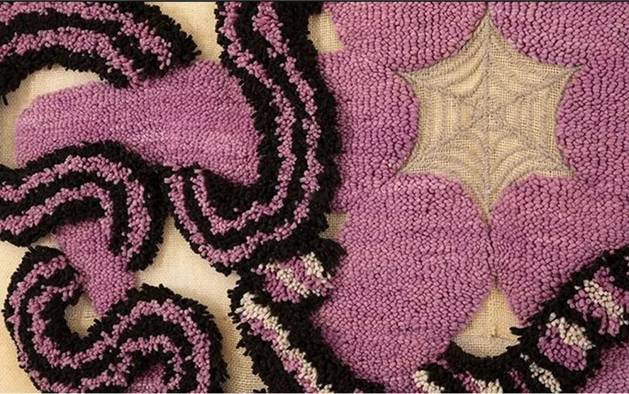 Aurora Pellizzi, que presenta Gorgonas, en Espacio Uno de Marco, desde este viernes y hasta el próximo 12 de mayo, hizo una obra de 3.45 por 3.58 metros, formada por nueve ayates de fibra de maguey unidos, sobre los que entretejió con lana de ovejas de colores naturales café, gris y blanco y en algunas áreas coloreó de violeta con cochinilla del nopal, las figuras en relieve de las hermanas Esteno, Euriale y Medusa que, según la mitología griega, tenían serpientes en lugar de cabellos y convertían en estatuas de piedra a quienes las miraran a los ojos.