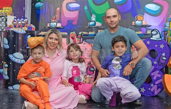 Gladys y Enrique eligieron la temática de Among Us para celebrar a sus pequeños, por ser el videojuego favorito de estos hermanitos que cumplieron 5, 10 y 8 años de edad. Divertidas sorpresas y unos postres deliciosos llenaron de alegría a los invitados, quienes la pasaron de lo mejor junto a los anfitriones de este sensacional festejo