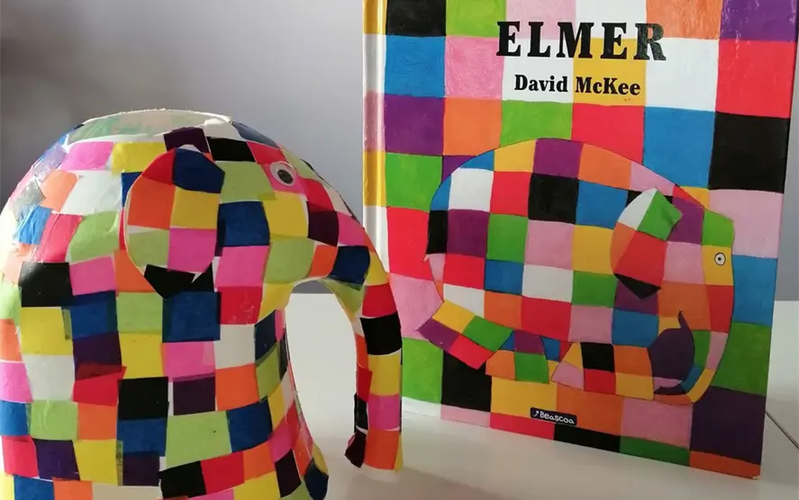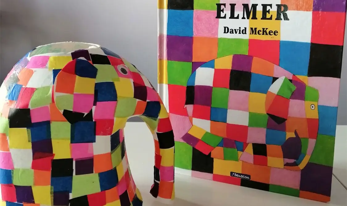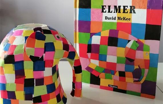 Elmer es un elefante con cuadrados de diferentes colores como un mosaico. Tiene una personalidad alegre y optimista, y le encantan las bromas pesadas. Las historias son ideales para explorar la diversidad cultural desde pequeños. Un día, Elmer decide parecerse a los demás elefantes, cansado de ser diferente, y se pinta de gris para integrarse. Una vez pintado, los demás elefantes y las criaturas de la selva ya no lo reconocen. Regresa con la manada y los demás elefantes permanecen en silencio hasta que Elmer no aguanta más el silencio. Levanta la trompa y, a voz en grito, grita “¡Bu!”, lo que, sin saberlo, sorprende a los demás elefantes. Los demás elefantes se dan cuenta de inmediato de que el elefante gris debe ser Elmer y lo aplauden por su mejor broma. Cuando empieza a llover, la pintura gris con la que Elmer se ha cubierto empieza a desaparecer, y sus verdaderos colores se revelan, para deleite de sus amigos, quienes preferían su personalidad multicolor y divertida. Tras su feliz reencuentro, los elefantes le aseguran a Elmer que lo quieren por sus diferencias, y no a pesar de ellas, y lo celebran pintándose de pintura multicolor (y Elmer se pinta de color elefante), en reconocimiento a su apariencia y personalidad únicas.