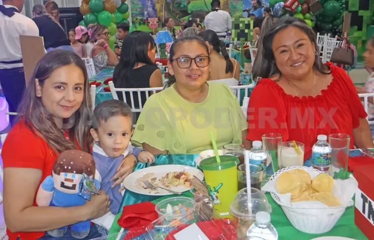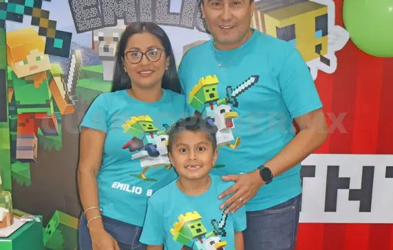 Una tarde llena de aventuras vivió Emilio con motivo de su cumpleaños, celebración que tuvo como temática el famoso videojuego Minecraft. El lugar se transformó en un mundo cuadrado y colorido donde no faltaron los detalles alusivos a los personajes favoritos del festejado. La diversión no se hizo esperar, pues la animadora puso a todos a participar en grandes retos, y también disfrutaron deliciosos dulces y muchas sorpresas. Muy contentos, desearon lo mejor al cumpleañero
