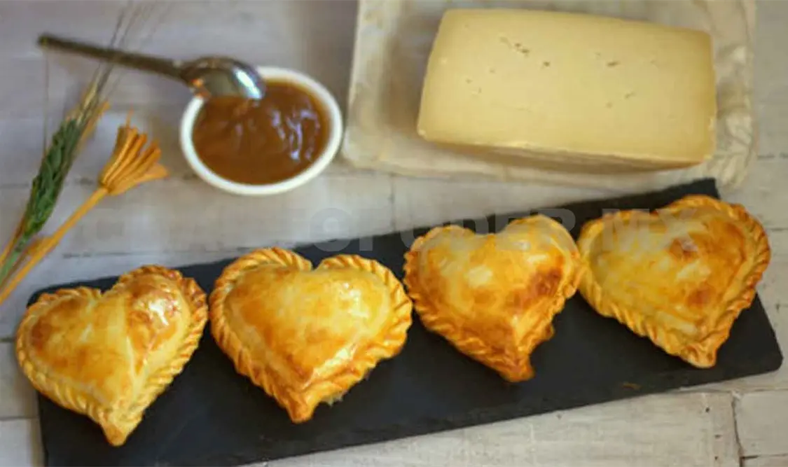 1. Coloca la pasta de hojaldre sobre una superficie plana y extiéndela con un rodillo hasta que obtengas un grosor aproximado de medio centímetro, ayúdate de un cortador de galletas en forma de corazón.