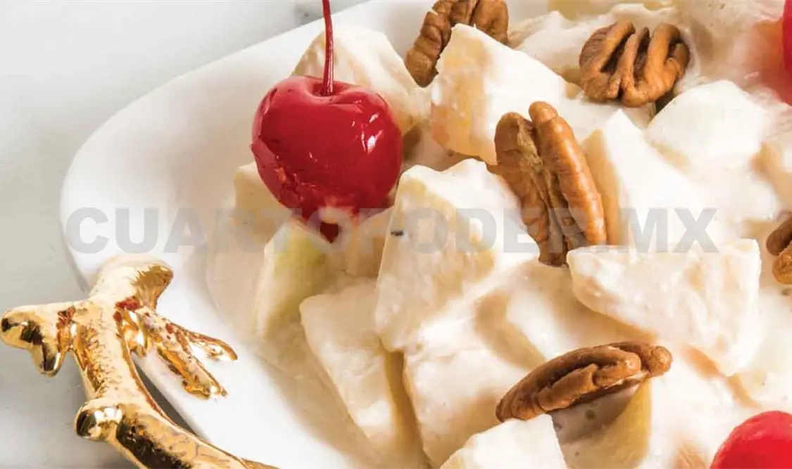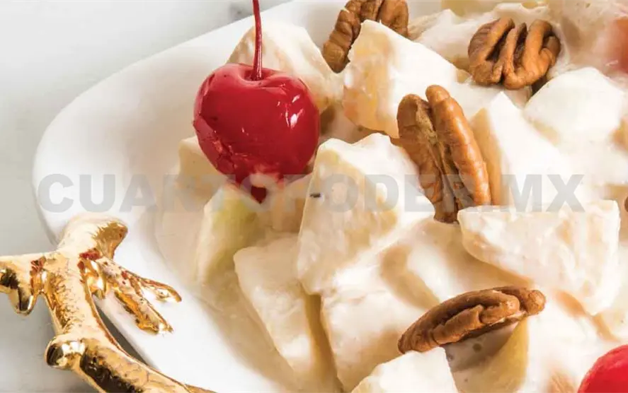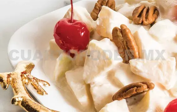 Sirve en una charola o en porciones individuales, finalmente agrega la nuez y las cerezas.