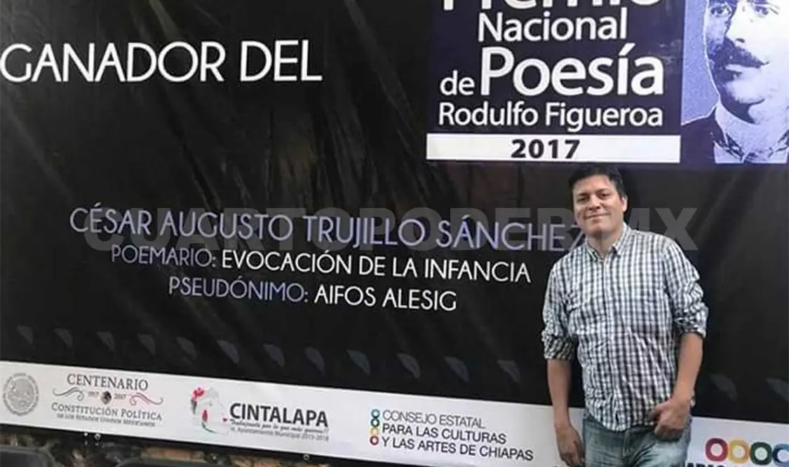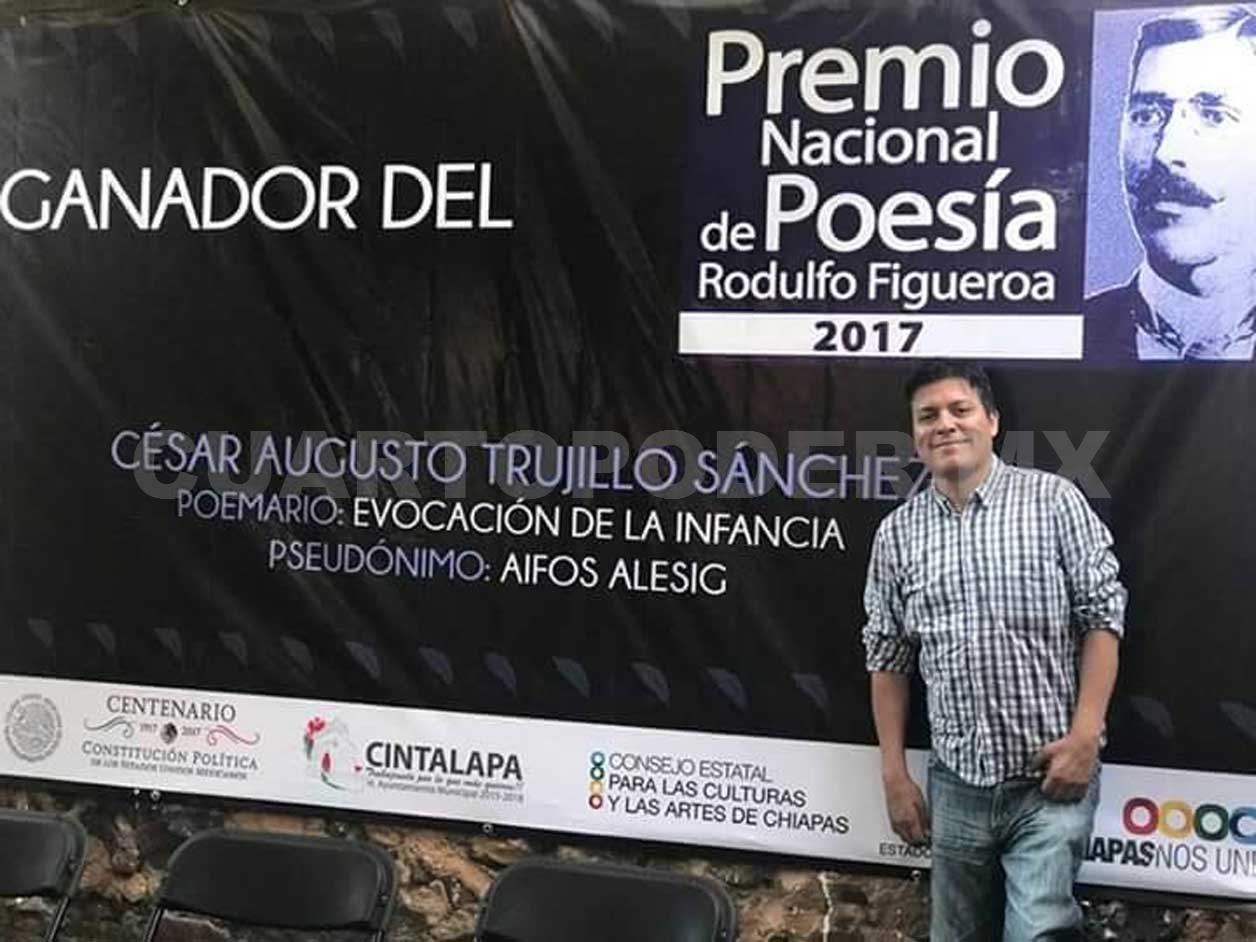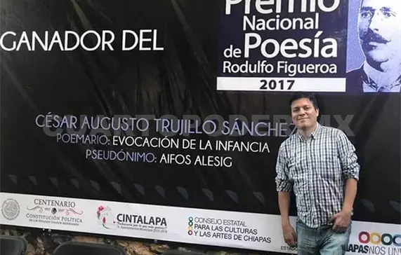 El poeta César Trujillo recibió la tarde del martes el reconocimiento que lo acredita como el merecedor del Premio Nacional de Poesía Rodulfo Figueroa 2017, por su obra Evocación de la infancia.