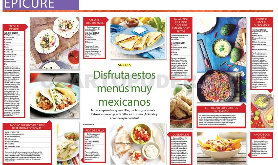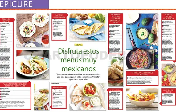 Disfruta estos menús muy mexicanos.Tacos, empanadas, quesadillas, nachos, guacamole… Esto es lo que no puede faltar en tu mesa. ¡Anímate y aprende a prepararlos!.