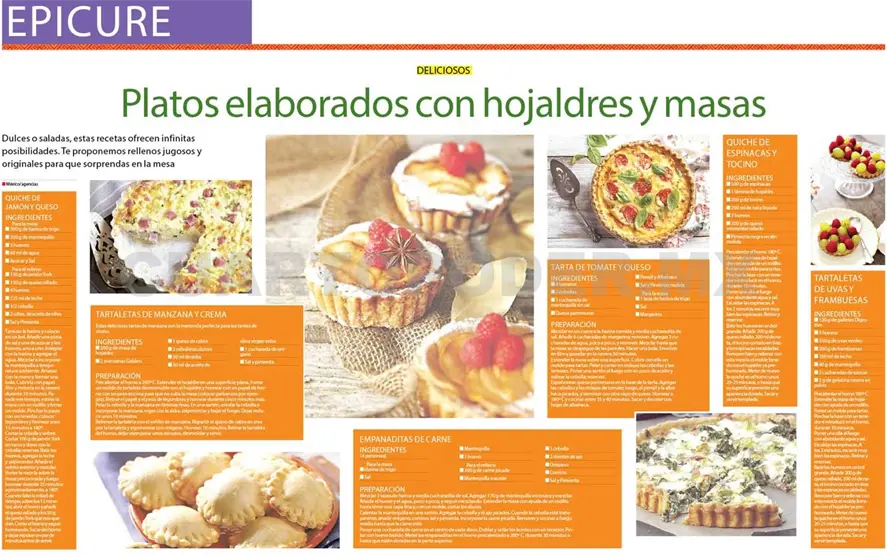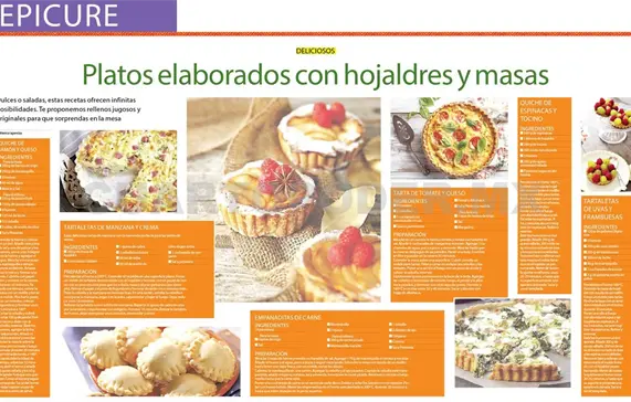Platos elaborados con hojaldres y masas.Dulces o saladas, estas recetas ofrecen infinitas posibilidades. Te proponemos rellenos jugosos y originales para que sorprendas en la mesa.