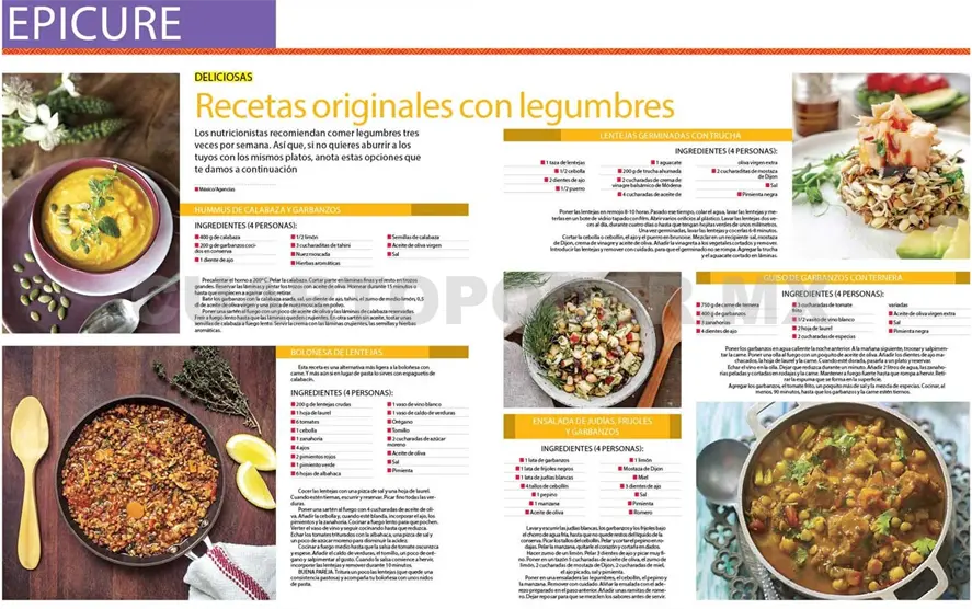 Recetas originales con legumbresLos nutricionistas recomiendan comer legumbres tres veces por semana. Así que, si no quieres aburrir a los tuyos con los mismos platos, anota estas opciones que te damos a continuación