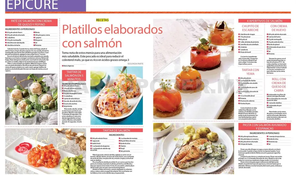 Platillos elaborados con salmónToma nota de estos menús para una alimentación más saludable. Este pescado es ideal para reducir el colesterol malo, ya que es rico en ácidos grasos omega 3