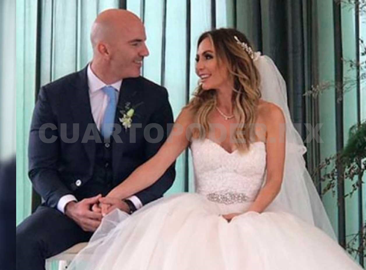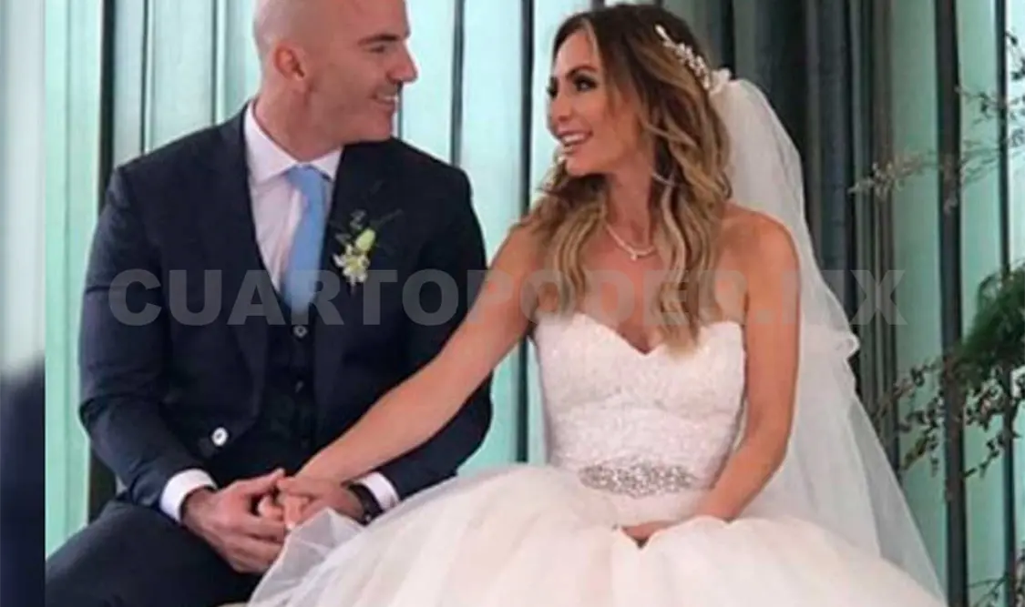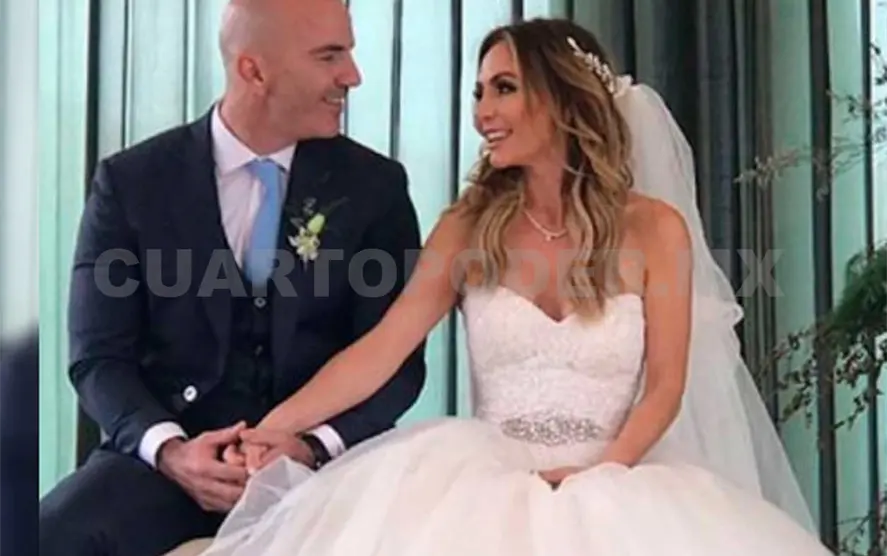 Erika Zaba, integrante de OV7, llegó al altar de la mano de Francisco Oliveros, CEO de Sura México, una de las aseguradoras más importantes del país. Antes de la boda, cada uno de los novios se arregló por separado. La famosa cantante eligió un vestido de Rosa Clará.