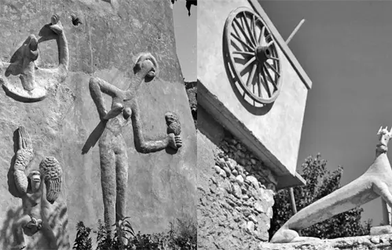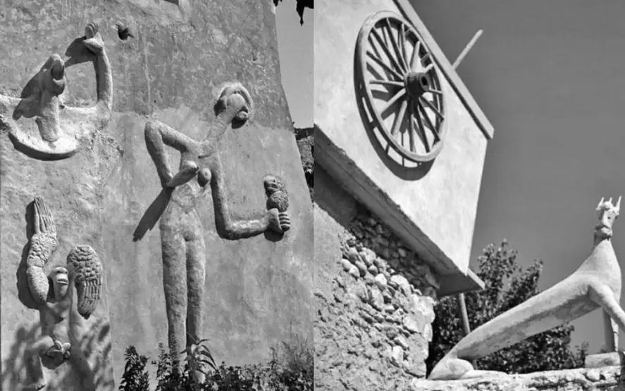 Los artistas Max Ernst (1891-1976) y Leonora Carrington (1917-2011) habitaron una casa en el pueblo de Saint-Martin-d’Ardèche, en el sur de Francia, de forma intermitente entre 1938 y 1941. “Ernst se dedicó alegremente a decorar el exterior de su granja con una serie de esculturas de cemento a gran escala de híbridos entre pájaros y humanos, y también Carrington hizo una escultura de yeso de una cabeza de caballo”, escribe Susan L. Aberth en Leonora Carrington: Surrealismo, alquimia y arte (2004).