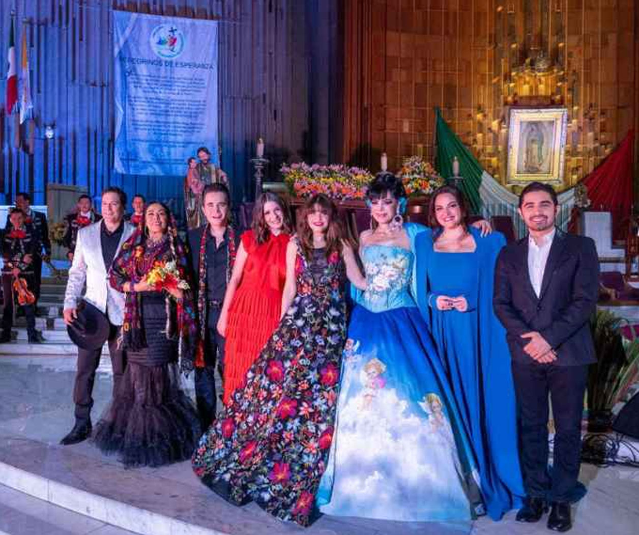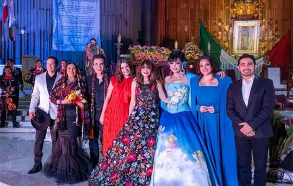 Visitó la Basílica utilizando un vestido muy especial. Maribel interpretó “Hermoso cariño”, y lo que llamó mucho la atención, fue el vestido azul que portó para la ocasión; el atuendo, diseñado por Mitzy, muestra a la Virgen de Guadalupe pintada a mano, así como el rostro de Julián Figueroa, flores y varios querubines.