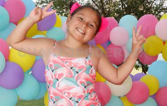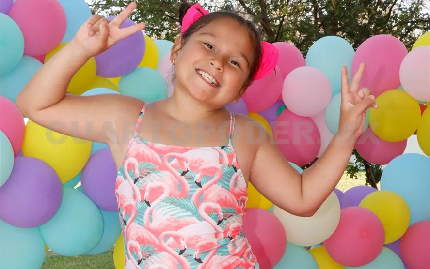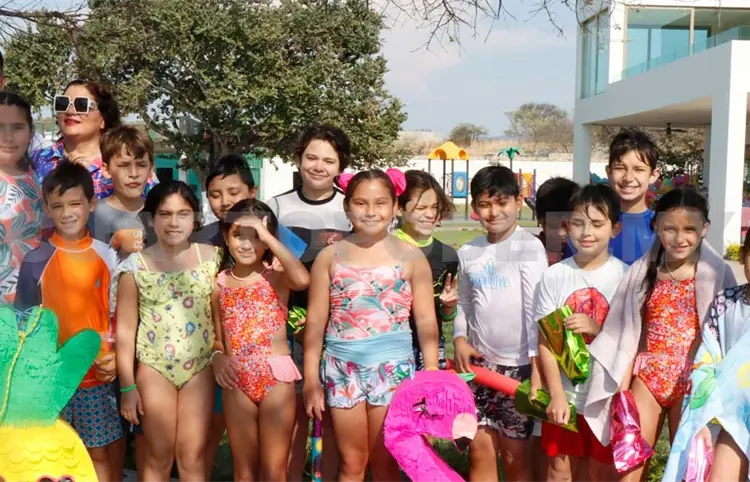 Elisa cumplió nueve años de edad y sus papás la consintieron con la albercada que tanto anhelaba. La pequeña disfrutó al máximo refrescándose junto a su hermana y sus amiguitas del colegio, con quienes después compartió deliciosos bocadillos y las divertidas piñatas