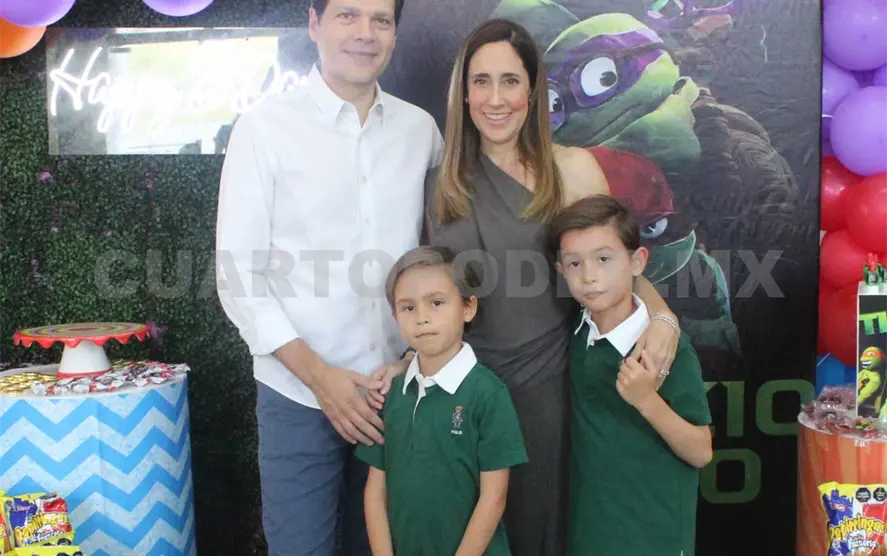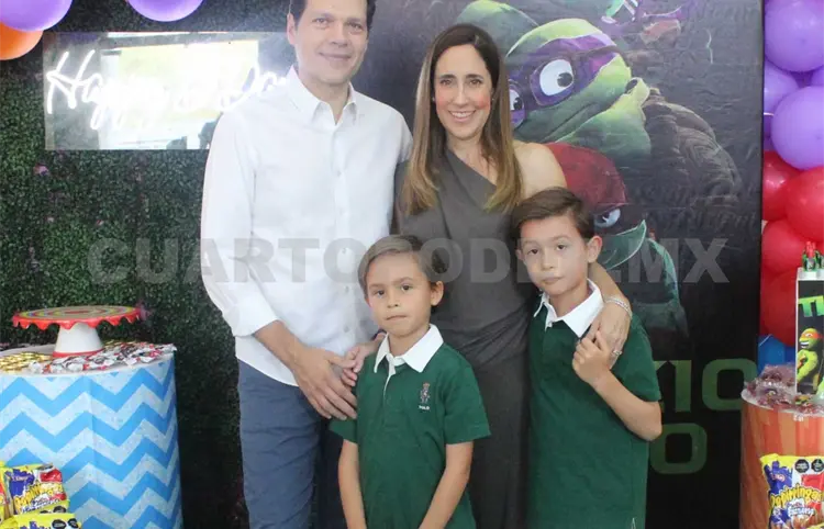 Ambientada al estilo de Las Tortugas Ninja fue como Alejandra y Fernando, papás de Patricio y Diego, prepararon una bonita fiesta para estos pequeños. Sus invitados llegaron con lindos regalos y llenaron de abrazos a los cumpleañeros. Un divertido show con sus personajes favoritos y las fotos con los anfitriones no podían faltar en ese día tan especial