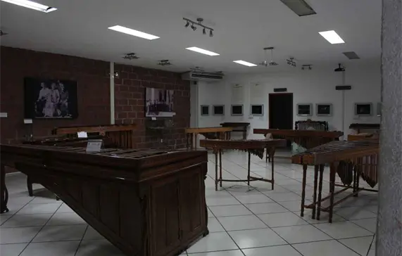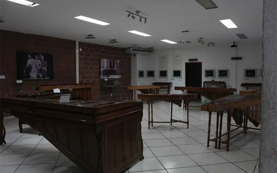 El acervo incluye 17 marimbas de distintos tipos, entre estas la más antigua, que data de 1917. También se cuenta con un pequeño foro en el cual se presentan libros o se dictan conferencias. Además, es posible admirar una exposición fotográfica permanente que permite conocer a distinguidos compositores y ejecutantes de marimba, que gracias a su compromiso y su pasión pusieron en alto el nombre de Chiapas.