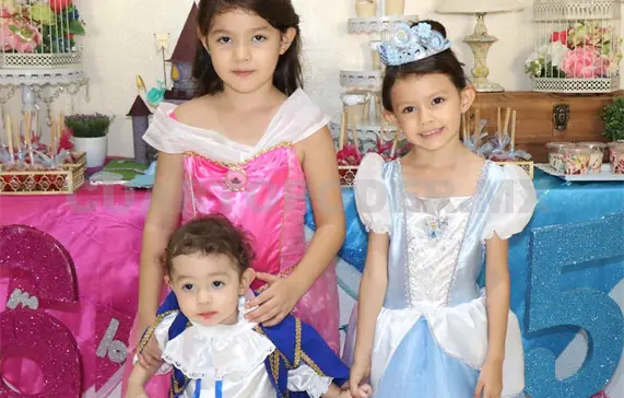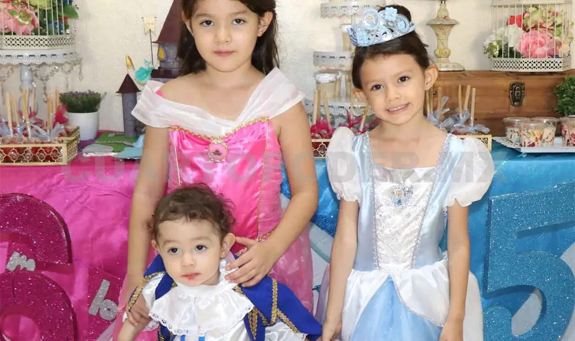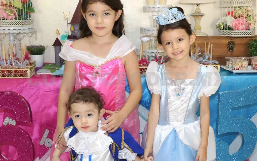 Las hermanitas Ámbar y Jade eligieron para su fiesta de cumpleaños los atuendos de sus princesas favoritas, Aurora y Cenicienta, respectivamente. Las pequeñas estuvieron felices de ver a todas sus invitadas luciendo como princesas y a su hermanito como un príncipe. En la celebración todos se divirtieron con el show y disfrutaron momentos muy emotivos como el vals de las festejadas con su papá y su hermanito