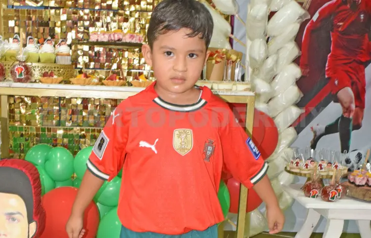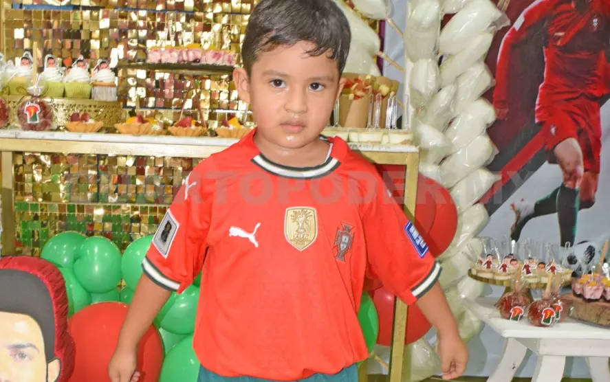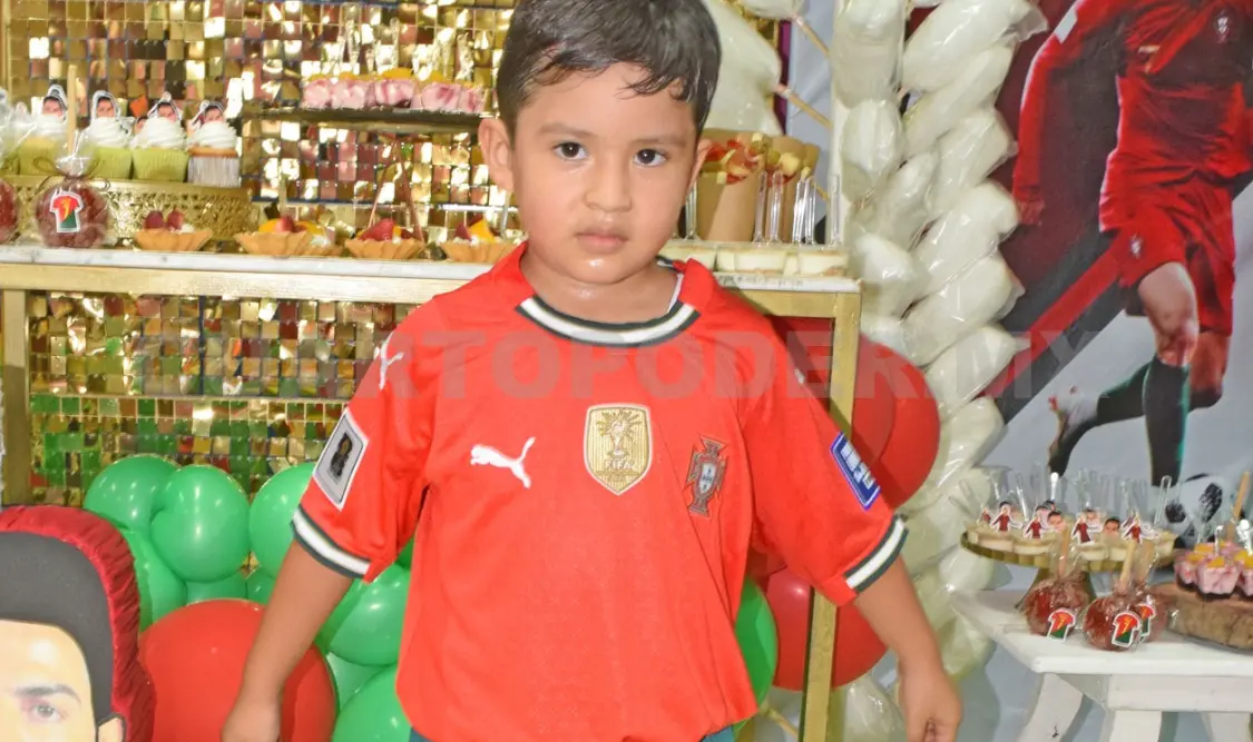 El pequeño Erick Ismael festejó sus cinco años de vida con una vibrante fiesta temática de futbol, al cual reunió a sus familiares para vivir una tarde de lo más emocionante con cada una de las sorpresas preparadas. El momento cumbre fue al romper la piñata en forma de balón, que desató risas y emoción entre los niños. El cumpleañero, radiante con su uniforme de futbolista, recibió el cariño de todos sus invitados